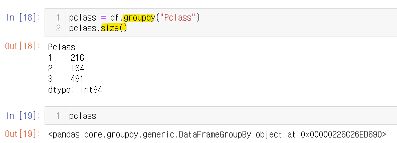 - groupby()와 size() 함수를 활용 (size를 쓰지 않으면 DF의 정보 값만 나옴)
