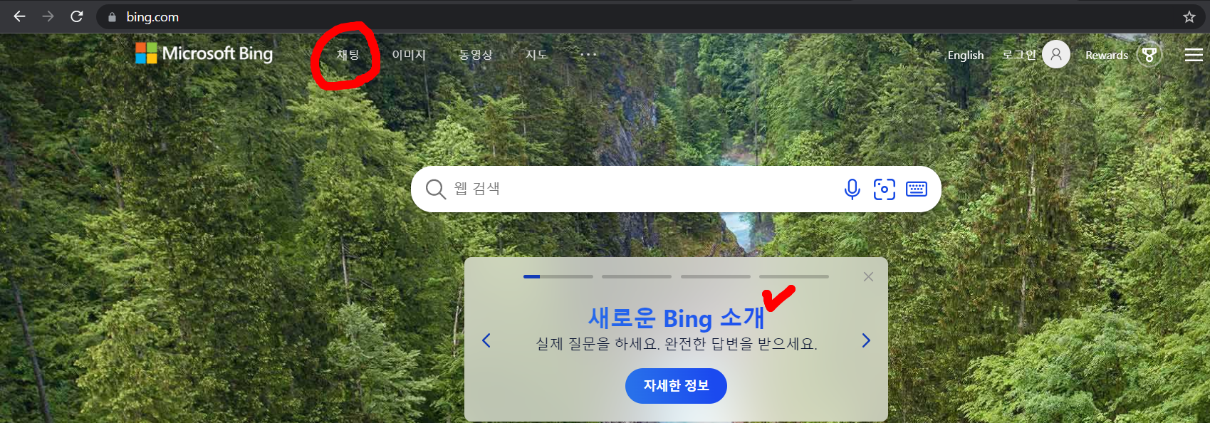 *Bing : MS에서 만든 구글, window사용자라면 처음 익스플로어를 열면 나오는 화면으로 잘안쓰기 때문에 좀 짜증나긴하다